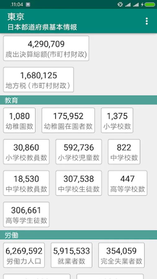 本アプリは総務省統計局公表した「政府統計データ」を整理して、日本各都道府県の指標、数値(「人口・世帯」、「自然環境」、「経済基盤」、「行政-