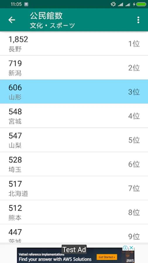 基盤」、「教育」、「労働」、「文化・スポーツ」、「居住」、「健康・医療」、「福祉・社会保障」、「安全」、「市区編」)をテーブルやグラフとして提供しております。その上、各指標の都道府県のランキングも作りました。