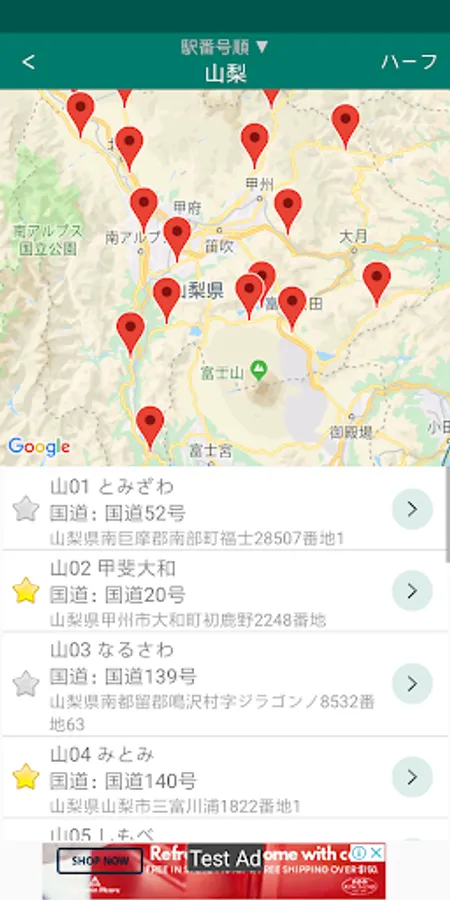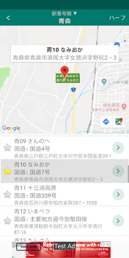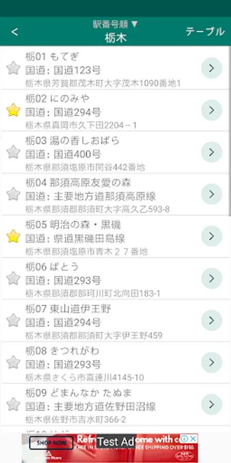 気に入りの機能、或いは検索(道の駅名、道路、アドレス)機能より、全国の複数の道の駅を比較することもできます。
