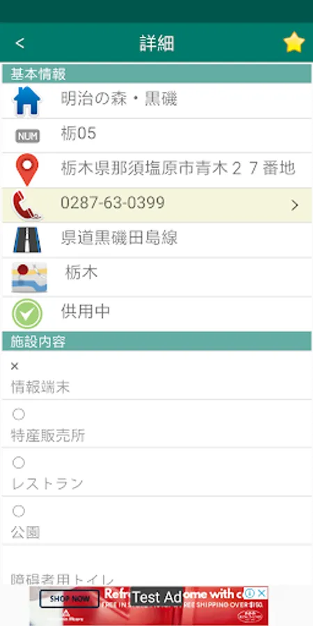 駅内の基本情報(駅番号、駅名、所在地、電話番号、所在道路、所在都道府県、使用状況)、開閉館時間、道の駅紹介、施設内容などの情報を備えています。
