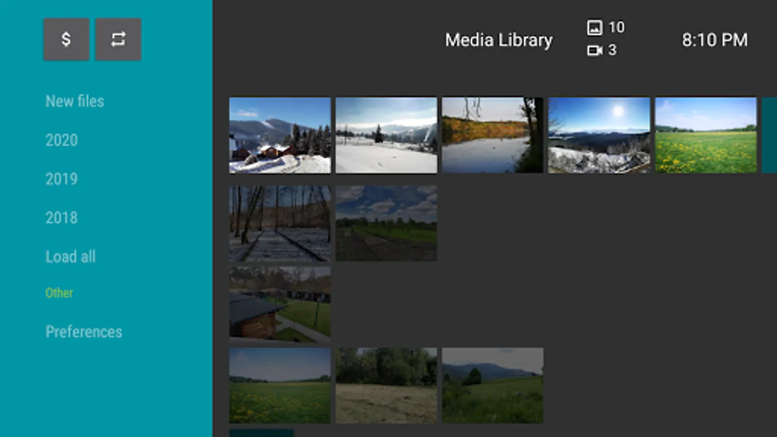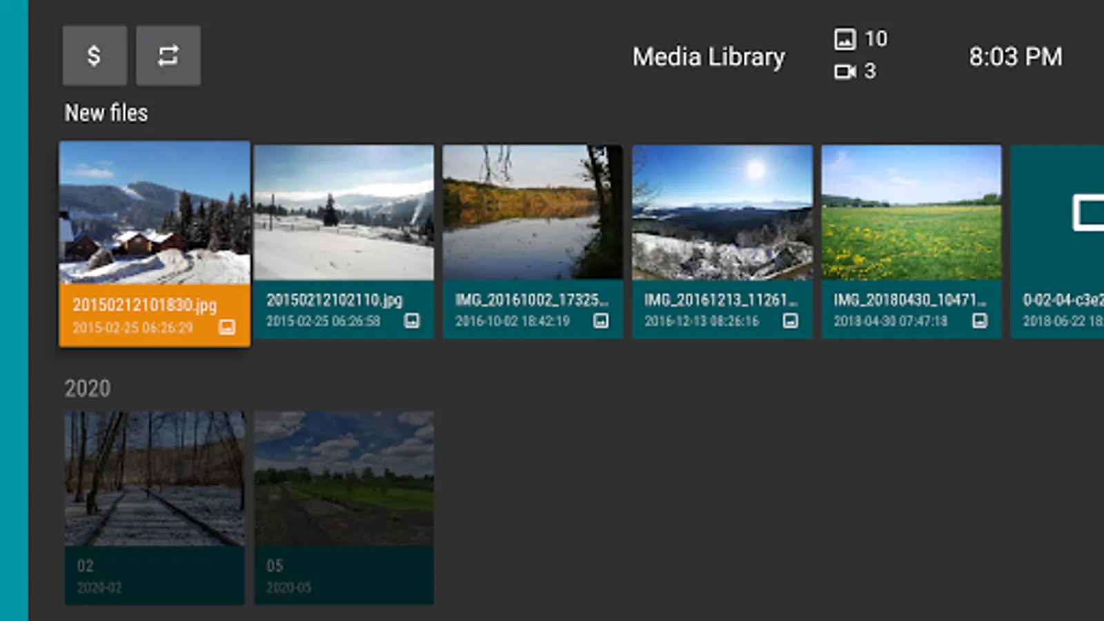 Android TV application which orders all your media by time, photos and videos togheter. No need to open differen application for different media types and search for needed date. Application scans specified folders shared from NAS or any other device in the nework.