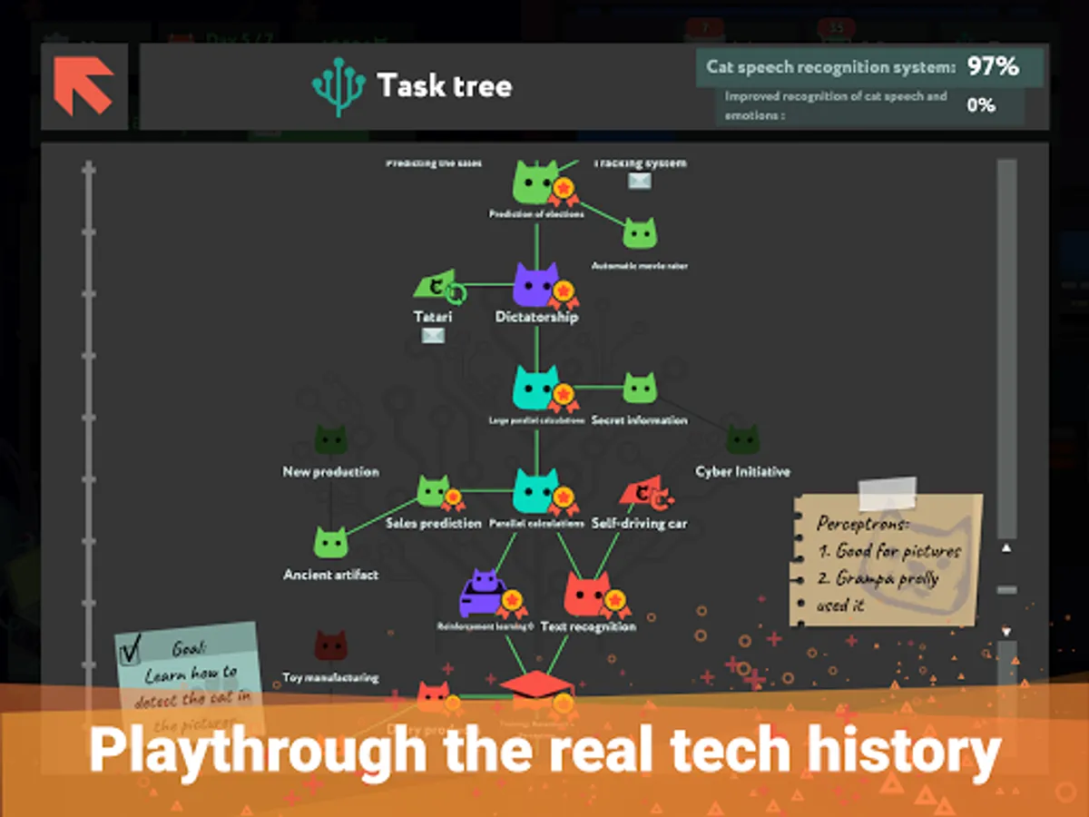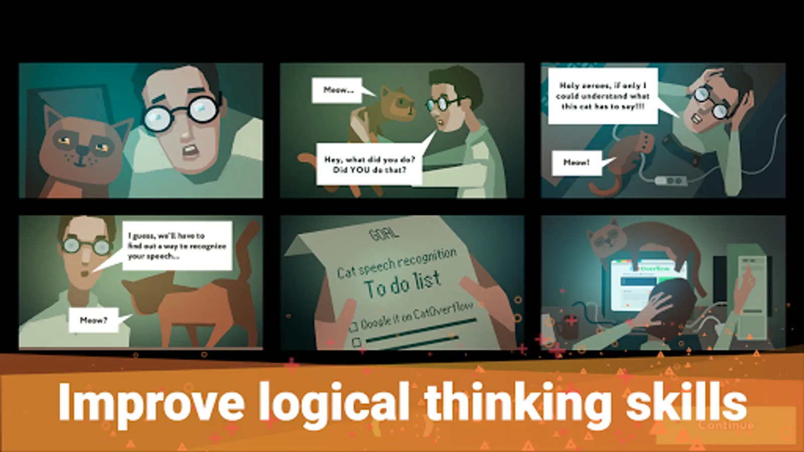 In this game, you play as a coder who accidentally found out that their cat is extremely good at coding, but not as good at speaking human language. Now this coder (it’s you!) must learn all there is to know about machine learning and use visual programming to build a cat-to-human speech recognition system.