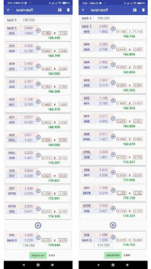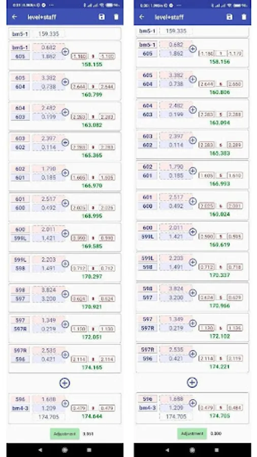 Displays a report of raw and adjusted elevations from the vertical adjustment methods. The line adjustment allows to spread the occurring difference over the individual staff stations.