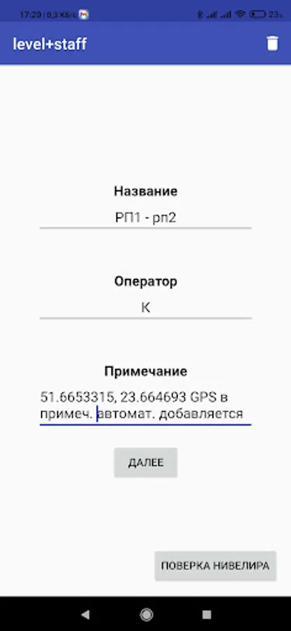 - In the notes, you can save the GPS coordinates of the project creation site.