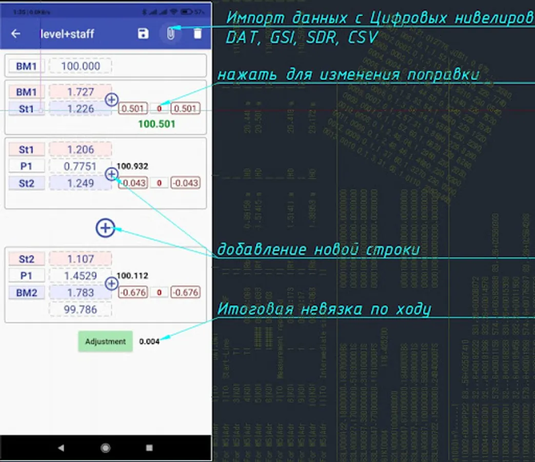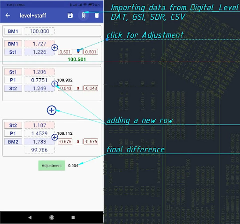 - Import Digital Level (leica: GSI; Sokkia SDL: SDR; Trimble DiNi: DAT; CSV)