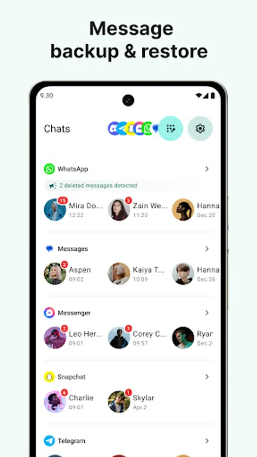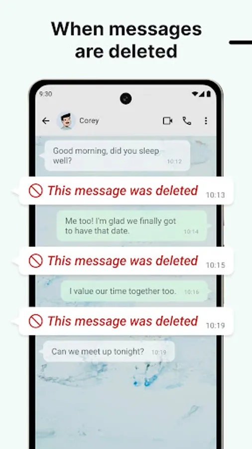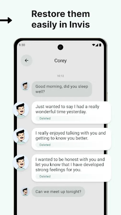 Messages are encrypted on your device, which prevents Invis from directly accessing them. But Invis smartly uses your incoming notifications to take note of any received messages. Invis will promptly back your messages up based on your notification history, ensuring you never miss out on important information. So you can view deleted messages or messages that you want to read without marking them as seen.