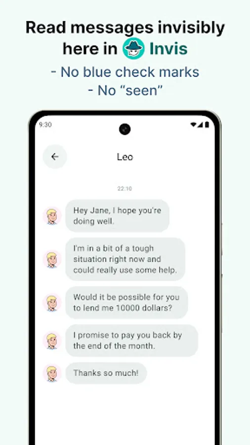 Annoyed by disappearing messages? Uncomfortable with revealing that you've read someone's message? Invis has got you covered! The ultimate privacy tool for your messaging needs!