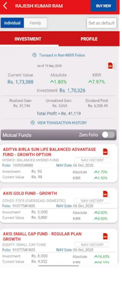 App for mutual funds investments, that lets you easily do systematic investments (SIP) or one-time investments to build long-term wealth, save taxes, retirement planning, and other goals like education and marriage of children. All mutual funds schemes are available. The app also allows easy redemption / sell of your mutual funds investments, in case you need money for any emergency.