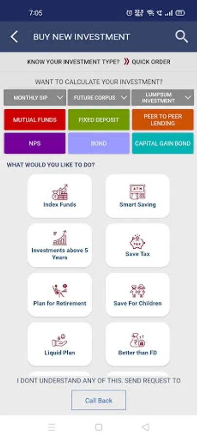 App for mutual funds investments, that lets you easily do systematic investments (SIP) or one-time investments to build long-term wealth, save taxes, retirement planning, and other goals like education and marriage of children. All mutual funds schemes are available. The app also allows easy redemption / sell of your mutual funds investments, in case you need money for any emergency.