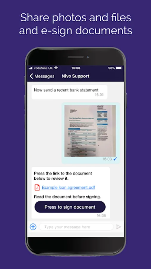 Nivo is a secure messaging app that lets you send and receive messages, photos, videos and files from service providers like lenders, banks, building societies, credit unions and professional services firms.