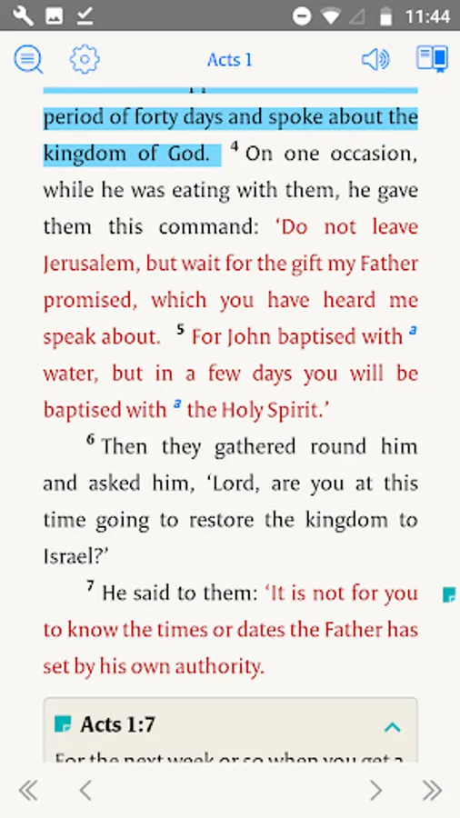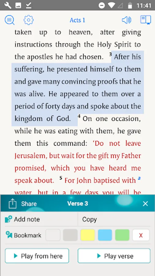 - Follow the verses as they are narrated by selecting ‘Highlight verse with audio’.
