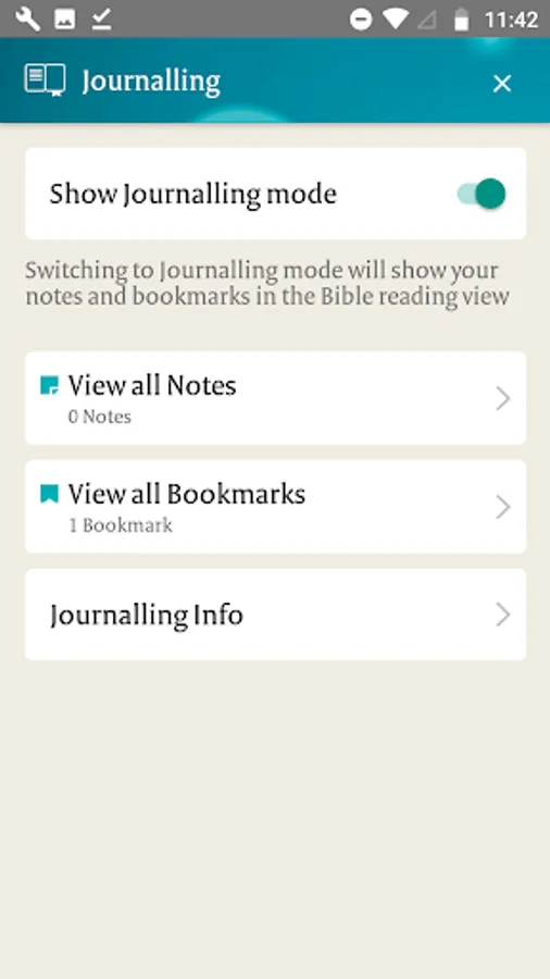 - Notes and Bookmarks tabs list of all your entries so you can quickly jump to the one you want.