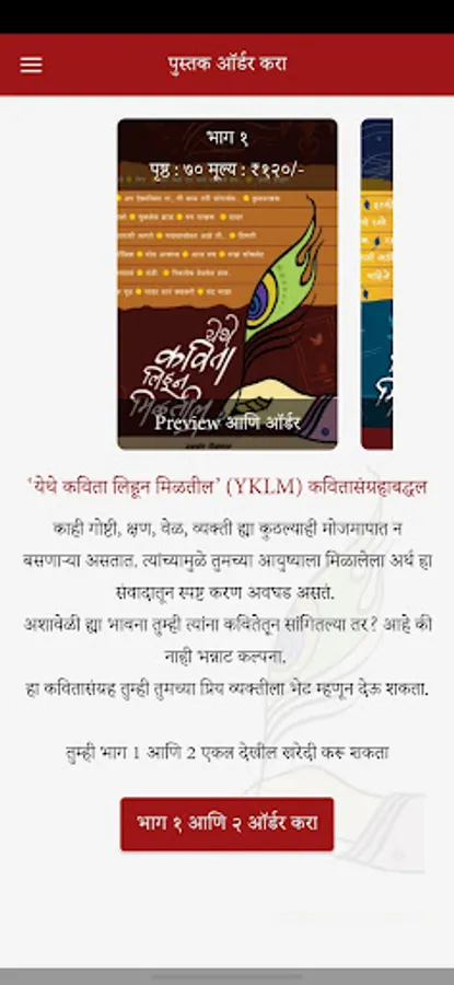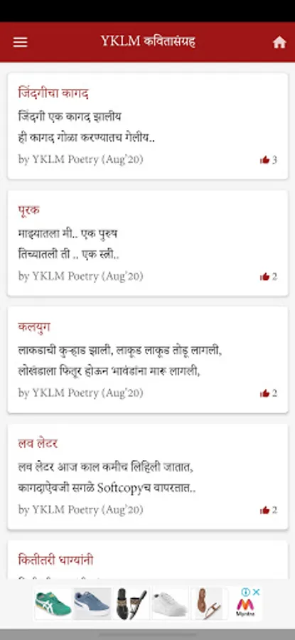 ‘Yethe Kavita Lihun Miltil’ is marathi Poetry app and a poetry book which is full of good emotional treasure for people who like to enjoy reading simple Marathi poetry. It contains poems covering various topics by various Marathi Budding Poets.