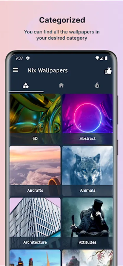 3D, Abstract, Aircrafts, Animals, Architecture, Attitude, Cities, Fantasy, Fire / Fireworks, Flowers, Fruits, Gaming, Iphone, Lights, Nature, Sky, Space, Sports, Technology, Texts, Vehicles.