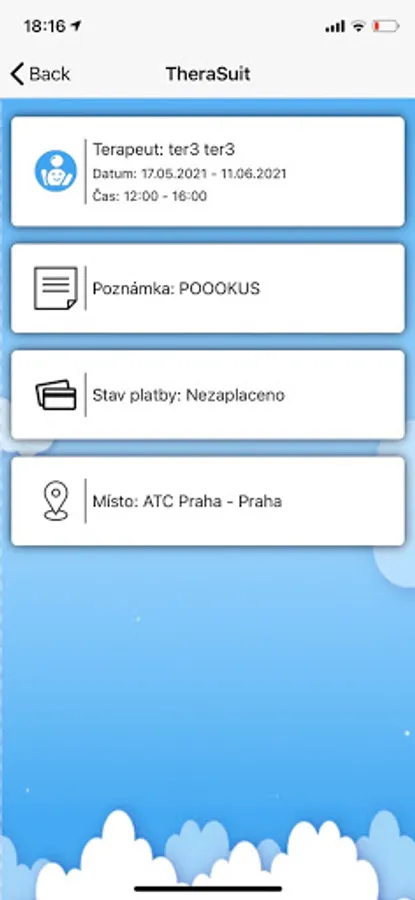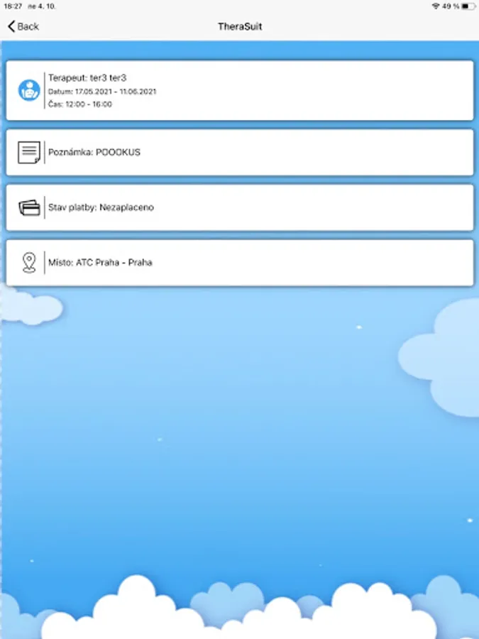 Tato aplikace usnadňuje komunikaci mezi klinikou a klientem. Klient má možnost nahlédnout do plánovacího systému, kde má přehled o svých budoucích terapií. Dostává informace o novinkách a případných změnách. Přes aplikaci se může klient předem omluvit z terapií.