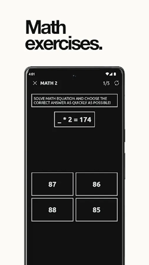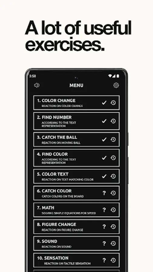 Remember to practice regularly to see improvement in your cognitive abilities and reaction speed. Each exercise of the game is POSSIBLE to pass. Don't give up if you find some exercises challenging, try to think outside the box and you will succeed!