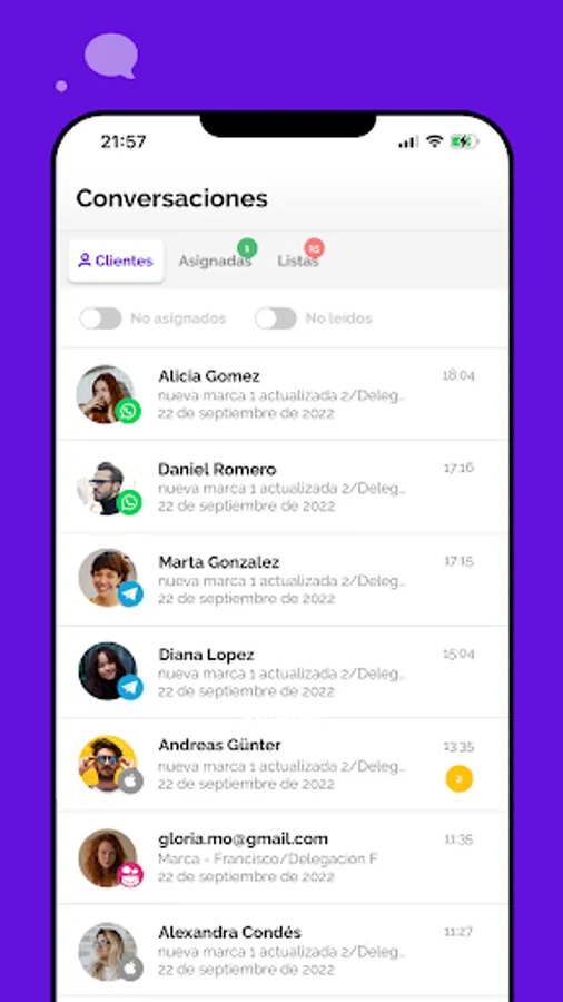 With the nixi1 APP you can unify the management of communications with your users and clients through the most popular messaging services such as WhatsApp, Instagram, Facebook Messenger, Telegram, SMS, Email or even your own instant messaging application. You will have on your mobile device a tool that will improve the service experience of your operators and your customers.