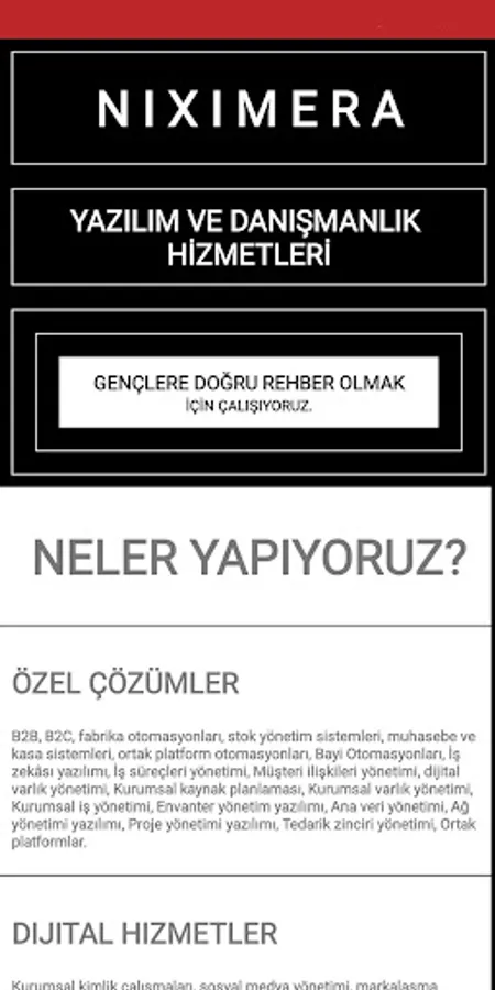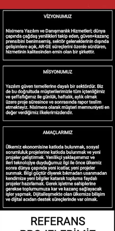 Niximera Software and Consulting Services; is a company that follows modern innovations worldwide, adopts the principle of trust = earnings, is open to developments outside the traditions of the industry, continues its R & D processes with care and is sure of the quality of its service.