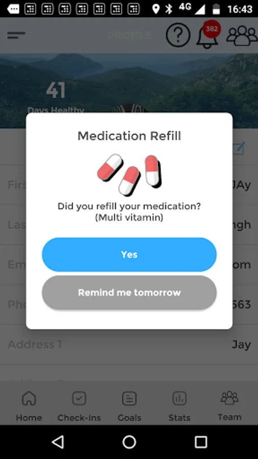 Receive alerts for medication ingestion and refills. Missed medications will automate refill and appointment reminders, request prescription refills.