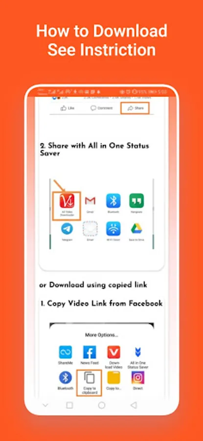 just click the copy link from social media post, story and status and app directly download that content in your device.