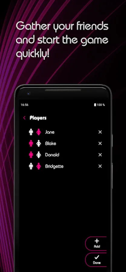 It allows you to create your own set of questions or dares. For this, you always have a convenient editor of questions and dares at hand. And of course, you are able to add any content from the ready-made sets of the “Truth or dare”. After all, you may want to add exactly what you need to your house party.