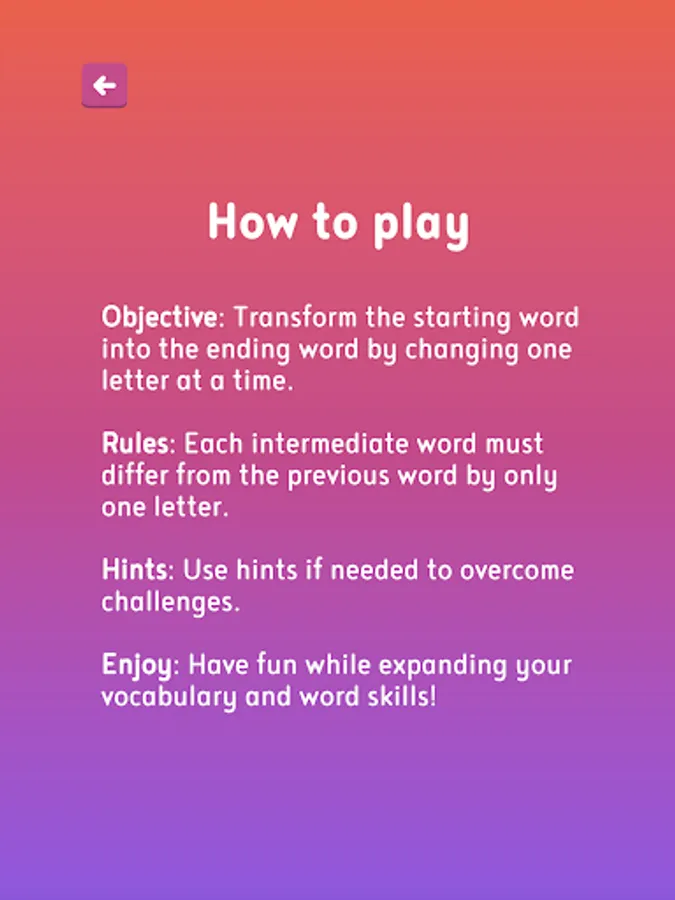 ◆ Objective: Transform the starting word into the ending word by changing one letter at a time.