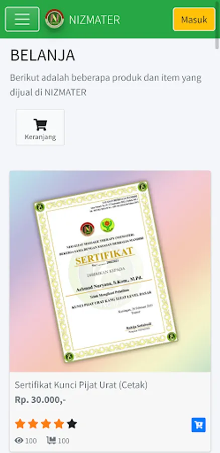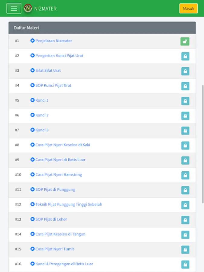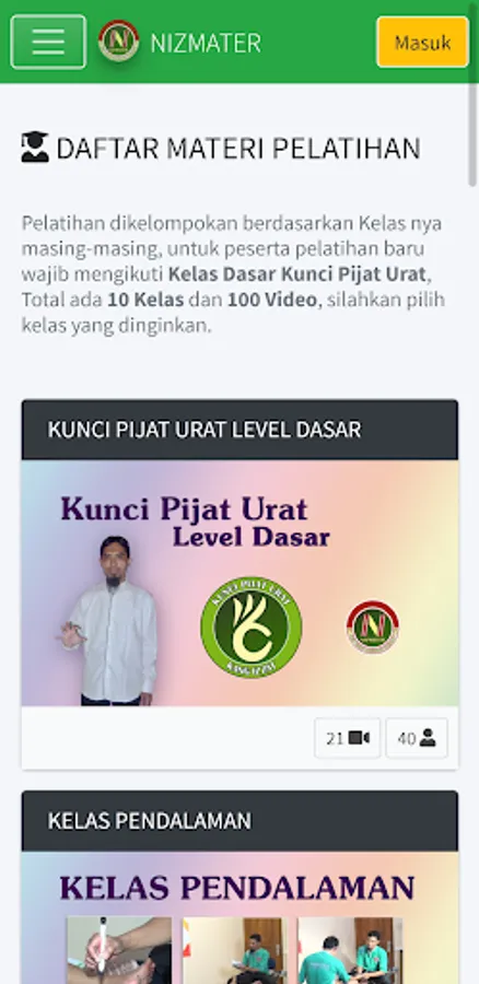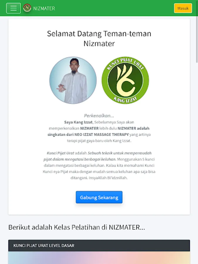 NIZMATER is an Application for Key Vein Massage Online Training by Kang Izzat, please install this application to make it easier for you to learn the material provided.