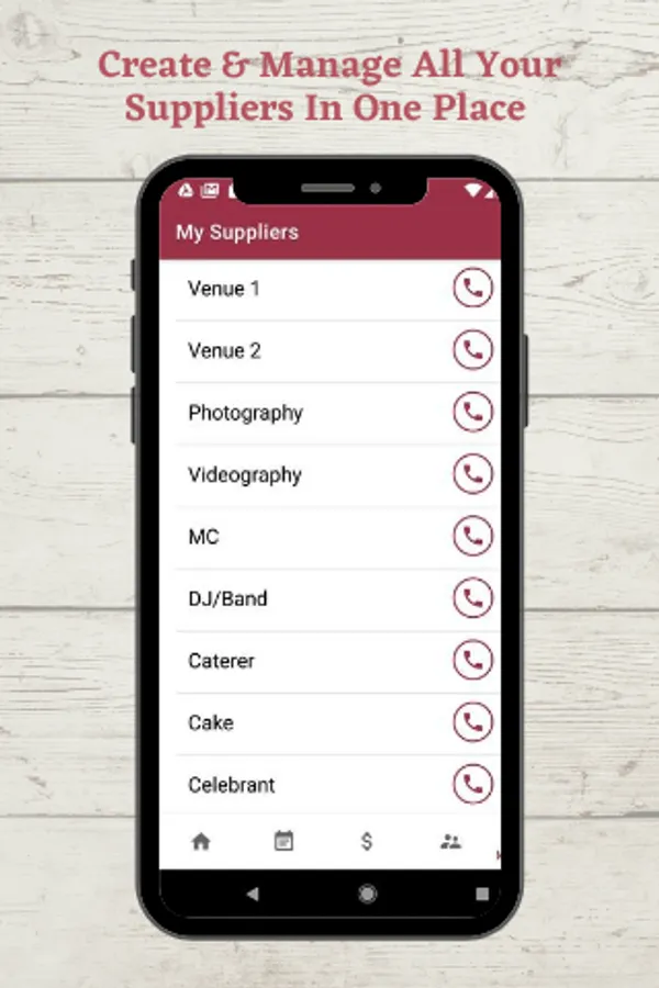 Never miss a meeting again! We’ll sync with your phone calendar to send you reminders for upcoming meetings with event suppliers, vendors and your venue!