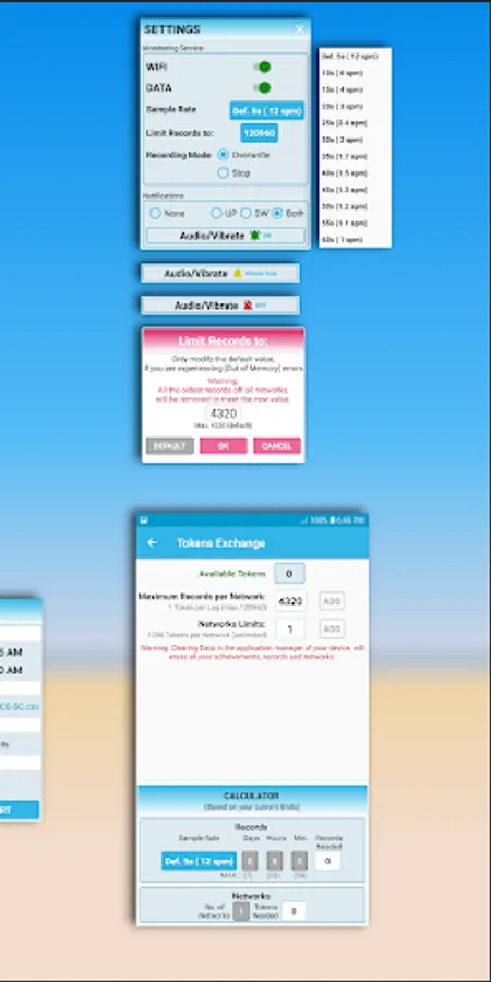 • Maximum records (logs): 8640** per network (up to 17280 using tokens)