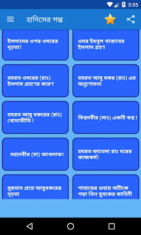 হাদিসের গল্প অ্যাপ একটি বাংলা ইসলামিক অ্যাপ। এই অ্যাপের মাধ্যমে আপনি ইসলামের অনেক ইতিহাস ও সত্য কাহিনী জানতে পারবেন। এই কাহিনী গুলো বিভিন্ন হাদিসের মাধ্যমে বর্ণনা পাওয়া যায়।