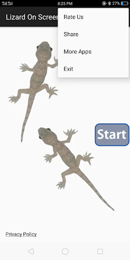Install "Lizard On Screen Prank" and Allow Floating Window Permission on Start/Opening then Click Start Button to Start Working and give the phone back to your friend after some seconds