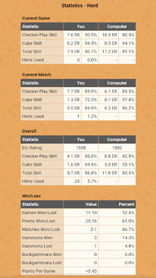 Discriminating players will appreciate how well the AI plays. It uses a neural network trained on millions of positions, a bearoff database, & a match equity table to achieve strong gameplay that will challenge even expert players.