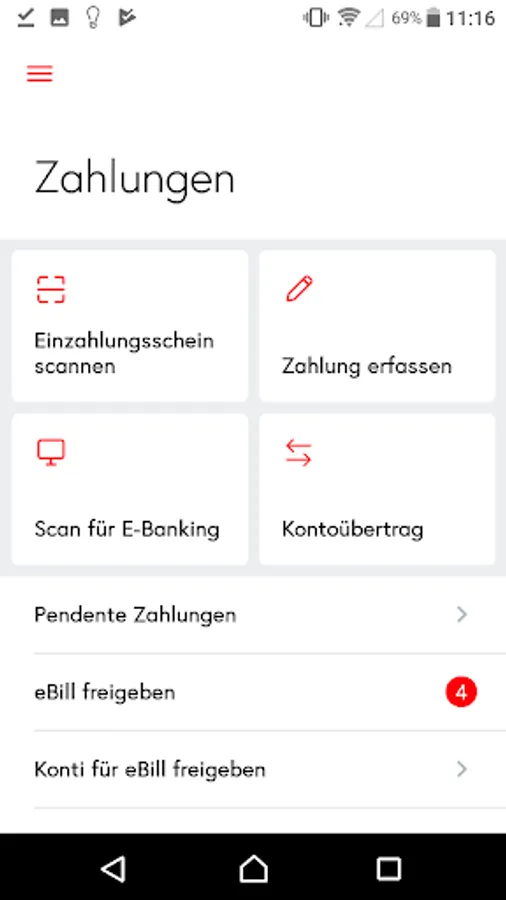 Approve e-bills, make account transfers, record payments with the help of the scanner function, overview of the last recipients and check pending payments.
