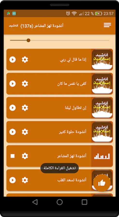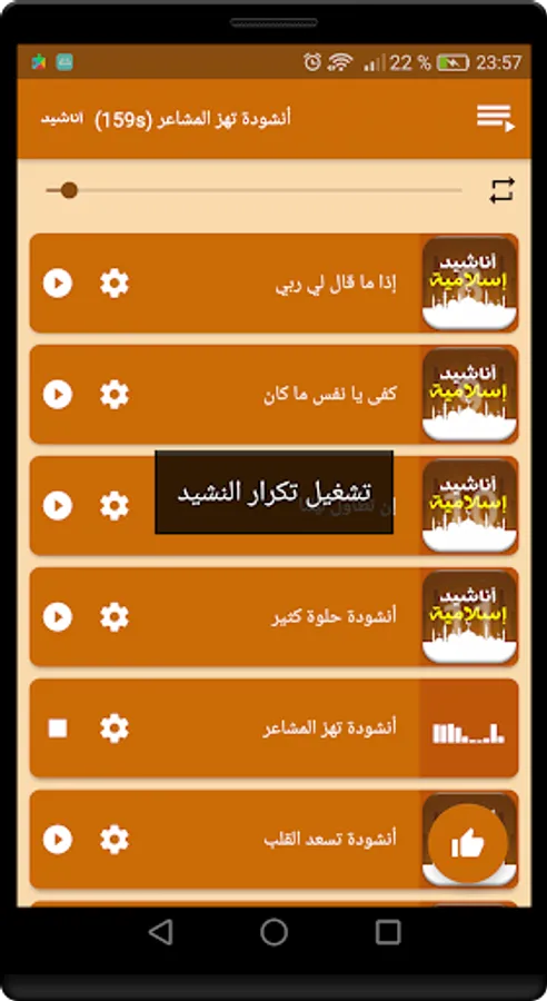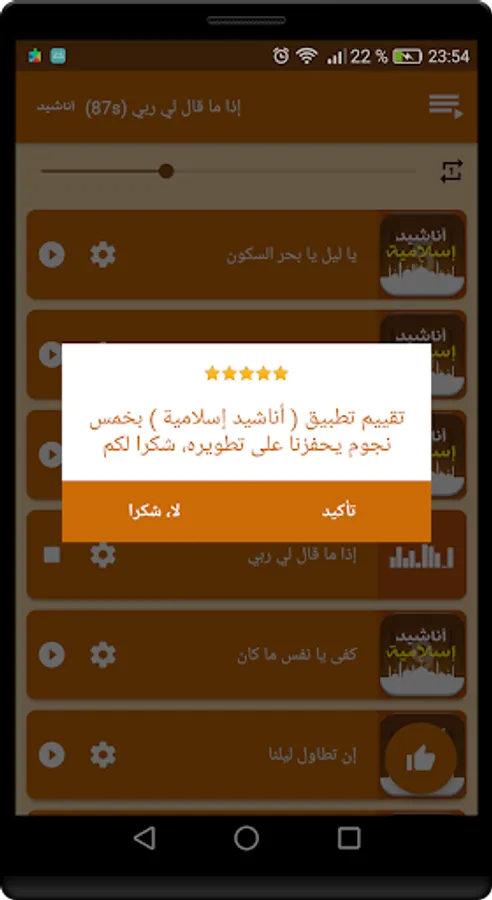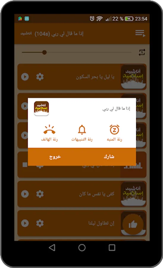The application of Islamic songs wonderful and distinctive without the Internet is an Islamic religious program contains many distinctive religious songs and religious tones wonderful and famous for high quality and without the Internet in addition to the most beautiful Islamic prayers and some Koranic verses beautiful voices.