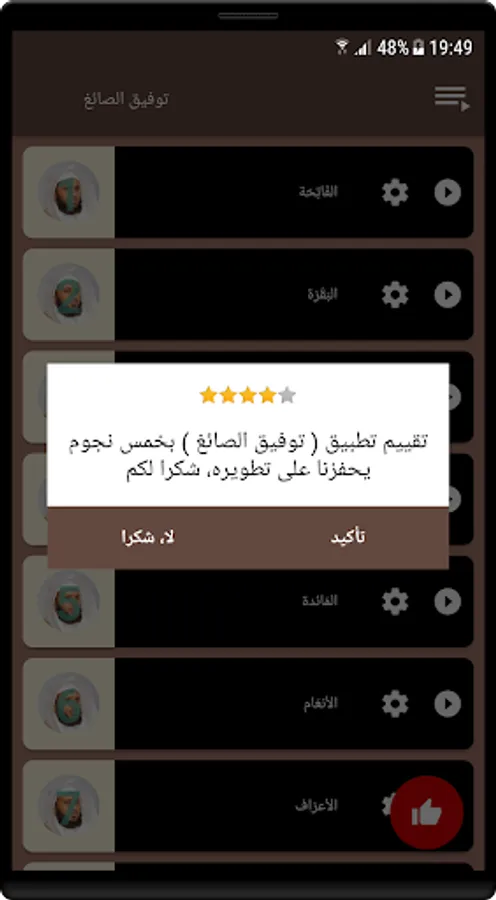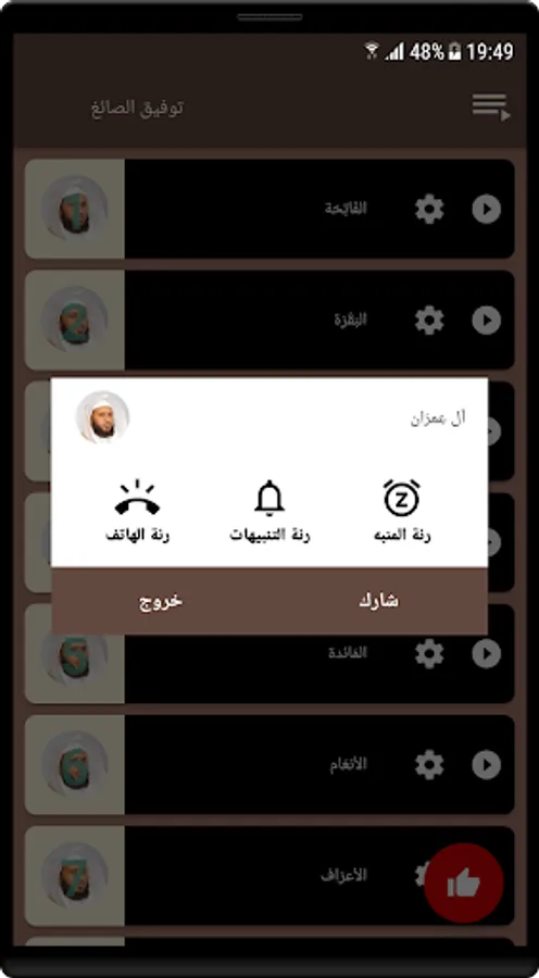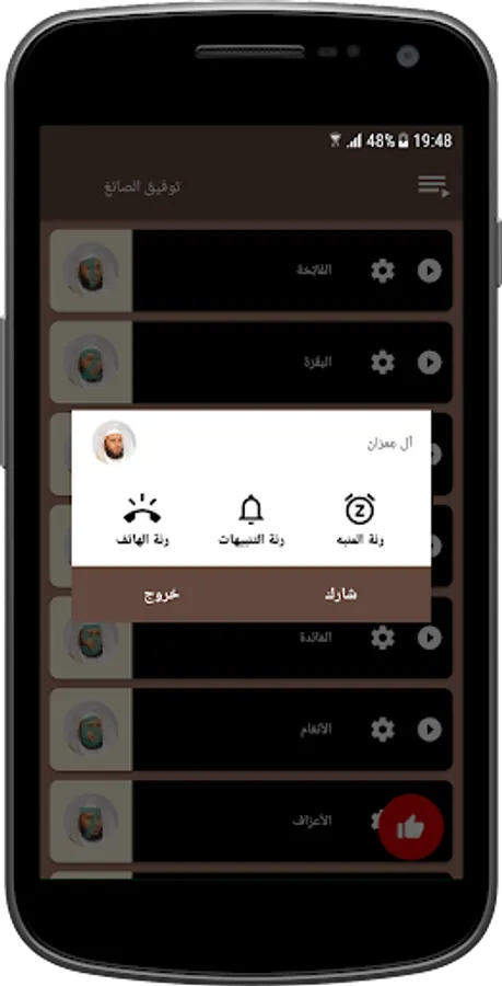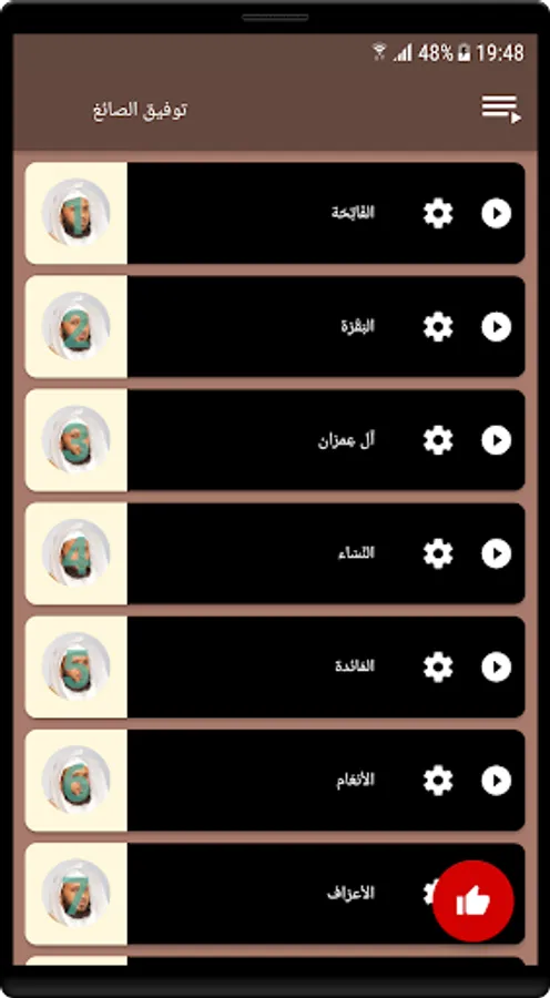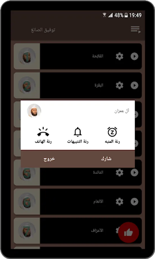 The application contains the Koran full voice reader Tawfiq goldsmith without Internet