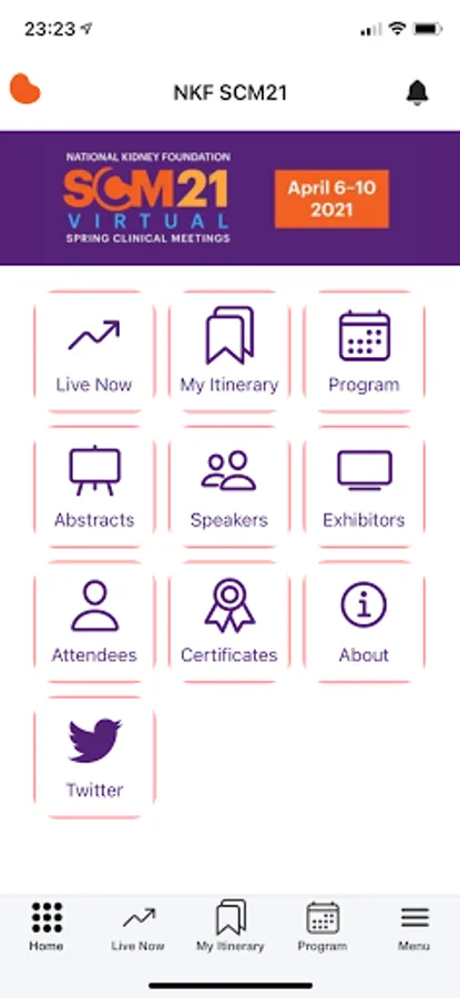 An event app for National Kidney Foundation to manage SCM 21 event. App features include viewing programs, abstracts, speakers, exhibitors and attendees. App also allows managing user profile information such as uploading a profile image. App uses push notifications to inform user of important event updates.