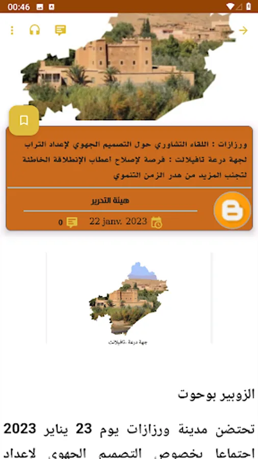 A Moroccan online newspaper that deals with the issues of the Draa-Tafilalet region and the south-east (Ouarzazate Errachidia Zagora Tinghir-Midelt).
