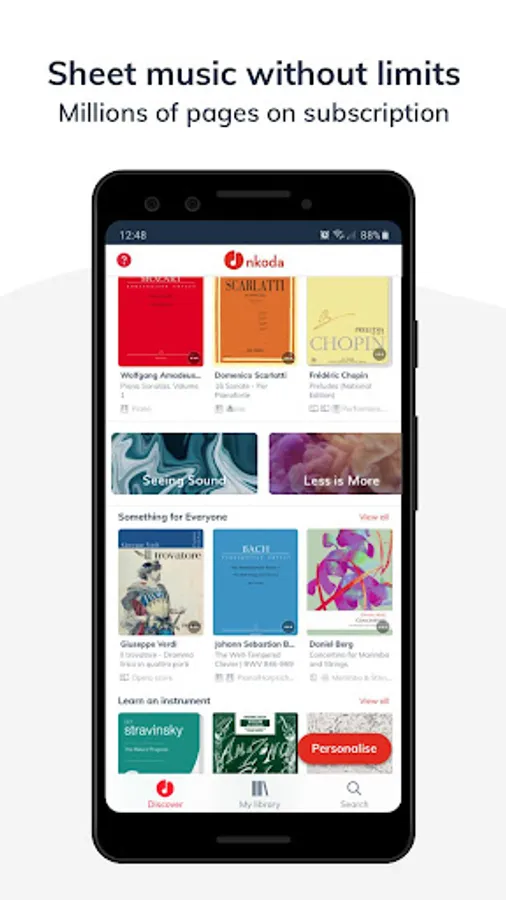 Unlike many other apps, nkoda’s subscription model grants you access to every single piece of music in our library. Play whatever, whenever.