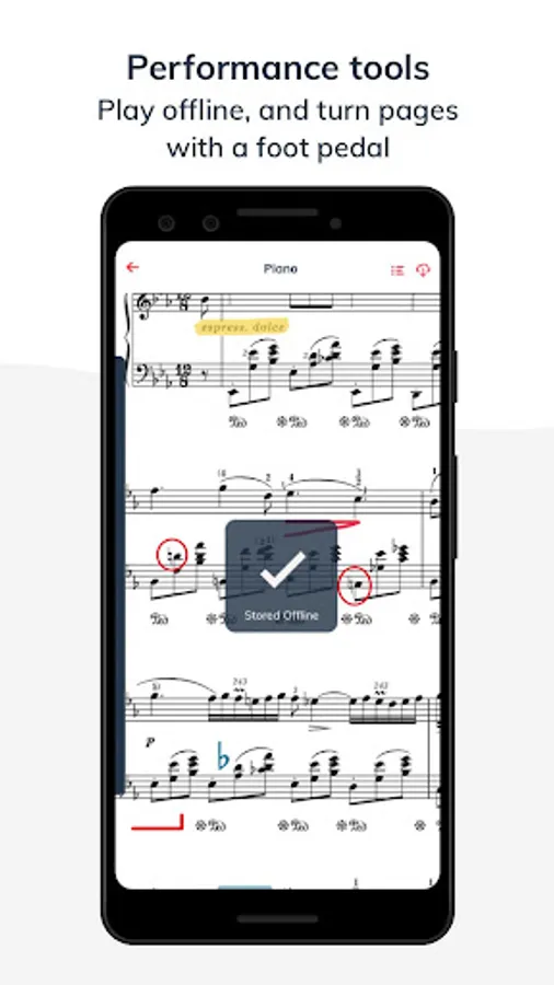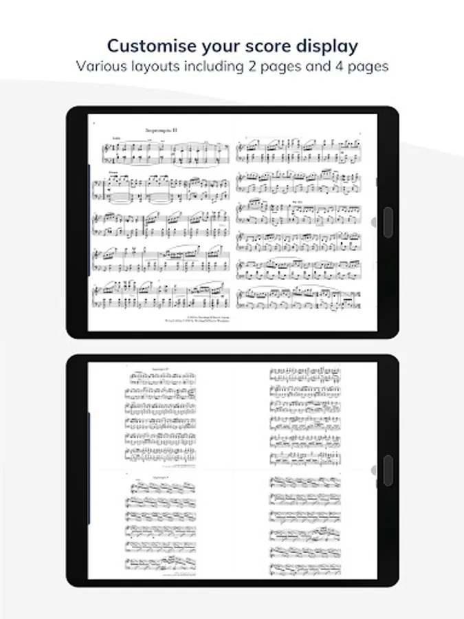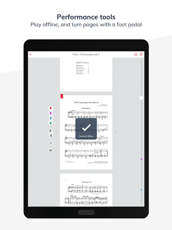 • Navigate the scores by using compatible bluetooth pedals
