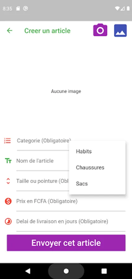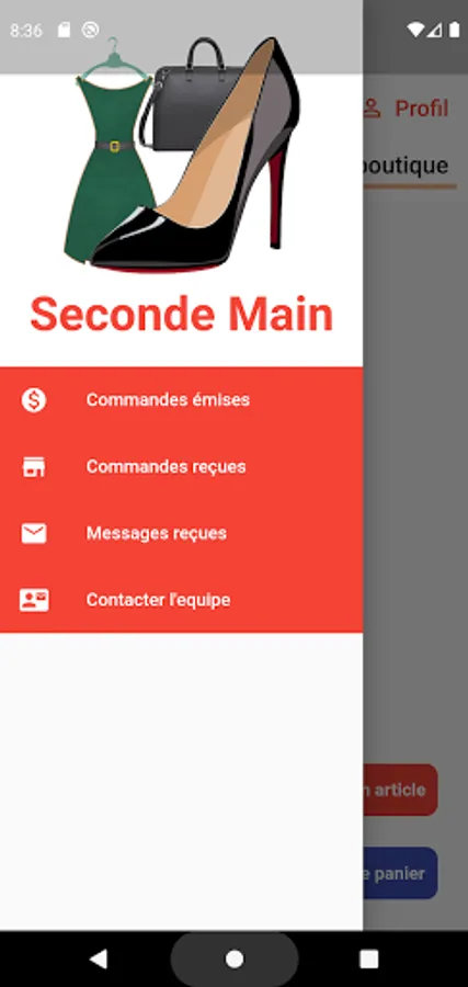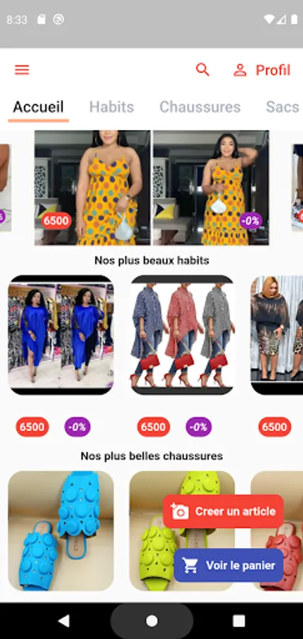 The application contains three main categories: Clothing, Shoes and Bags. At this level, the application will be called upon to evolve.