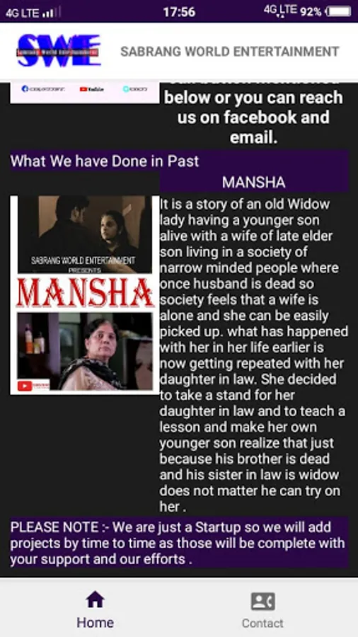 This Application is a startup one as we just started to making films so we request you please support us by not judging us for the time being as this app is a way to showcase our work and the projects on which we are working .
