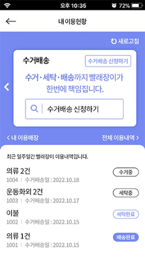 Laundry is a self-supporting laundry franchise brand through the acquisition of professional laundry skills, the establishment of a systematic system, and the introduction of a franchise system for the self-reliance of the low-income class in Daegu. The laundry app supports services from local laundry shops to collection and delivery after washing.