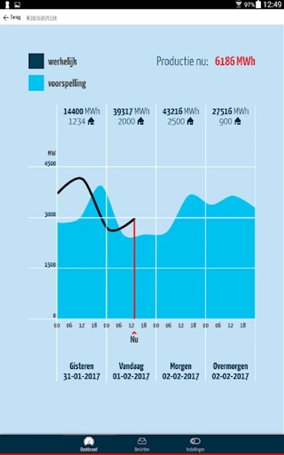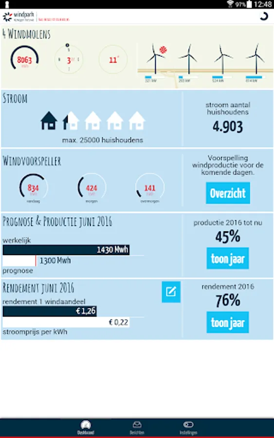 View the current data Windpark Nijmegen Betuwe! No matter how hard the wind is blowing? How hard turning mills? How many households, there may be provided at the moment of flow?