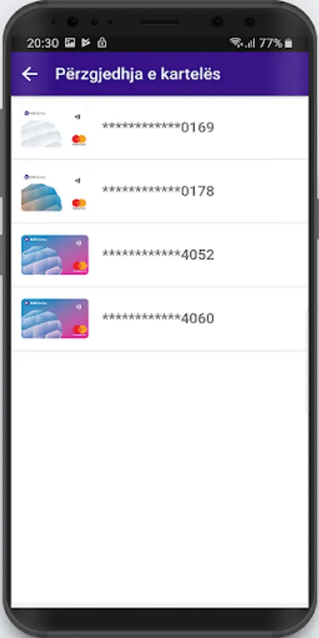 • Zgjidhni kartelën NLB MasterCard ose NLB Visa që përdorni më shpesh për pagesa si kartelë bazë. Nëse doni të shtoni një kartelë tjetër në kuletën digjitale NLB Pay, shtypni butonin "+".