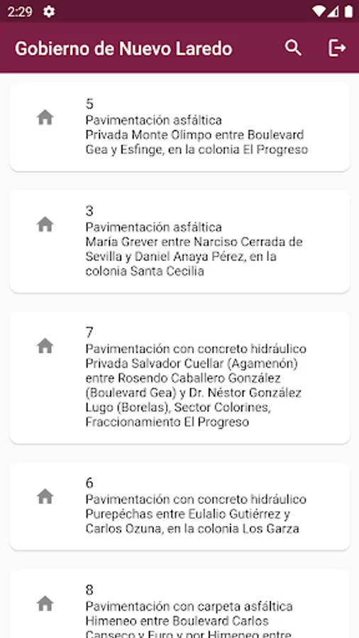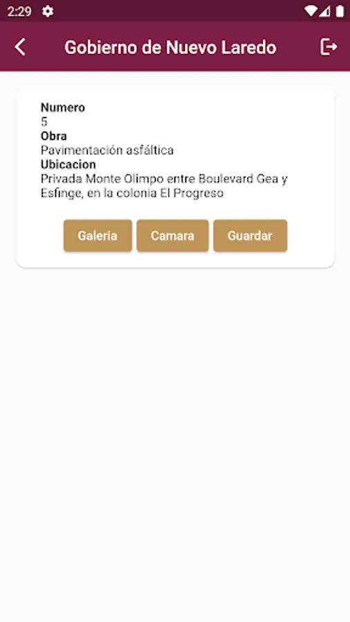 Application for exclusive use for public works personnel, allows uploading photographs of works in progress.
