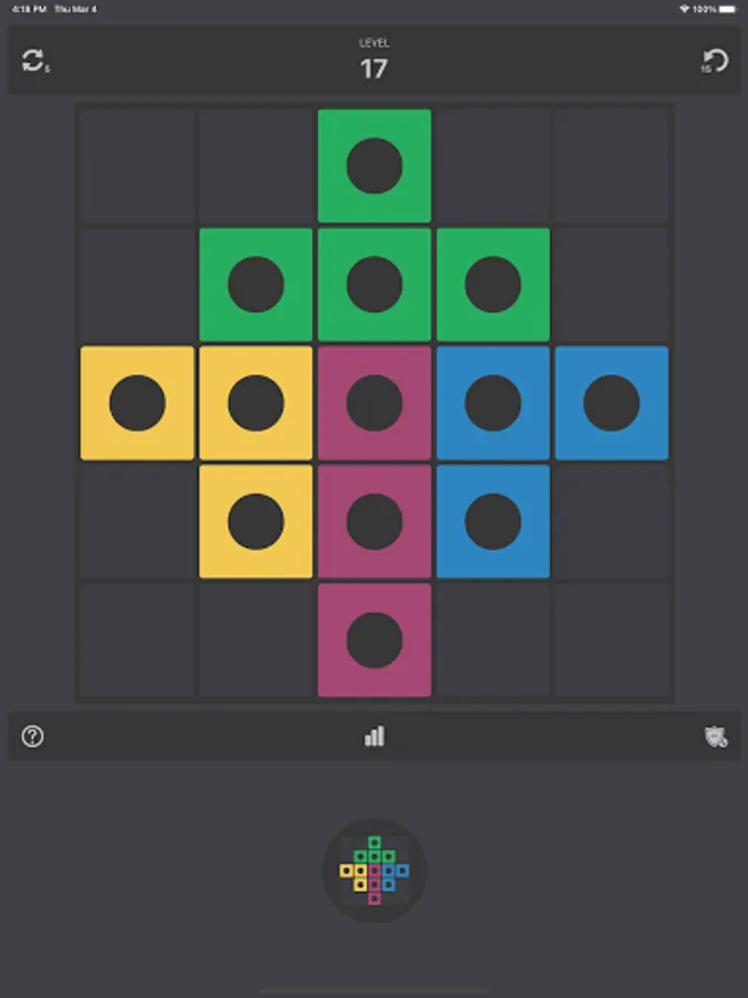 Block In: Puzzle Game is a game for relaxing with many challenges. With this game, all you need to do is to slide the tiles with the same color to connect together as sample provided. But be careful because when tiles with same color are close to each other, they will combine together and cannot be moved any more.