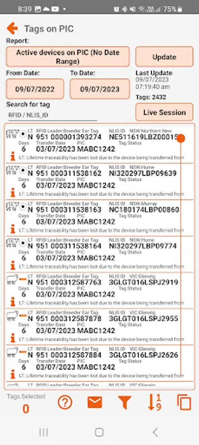 Effortlessly manage your tags with NLISBuddy's tag management features. View tag details, search for specific tags, and utilize the information for various purposes within the app. Selected tags can be used in other functions and reports, providing seamless integration.