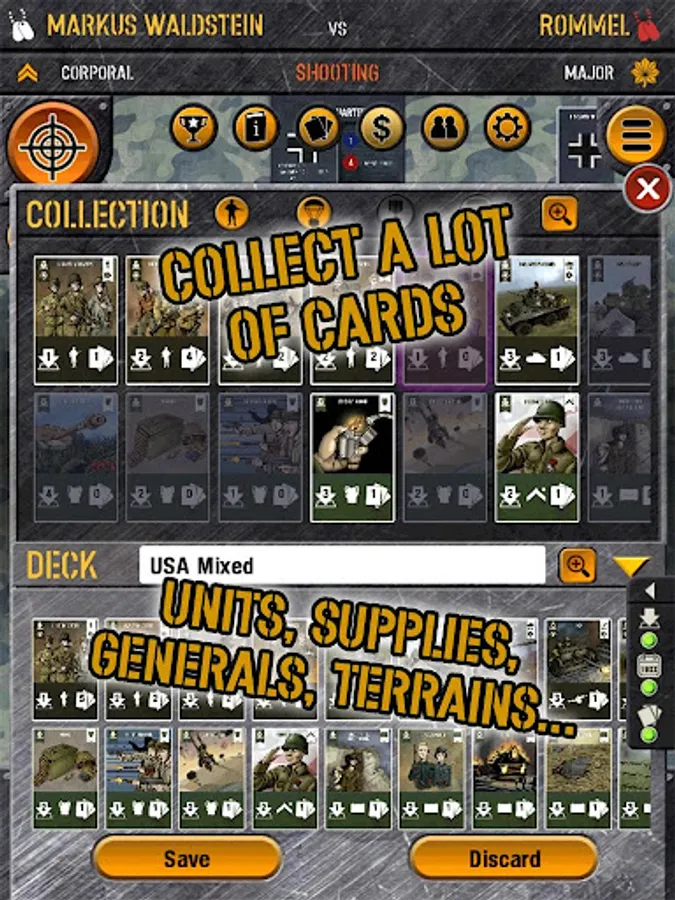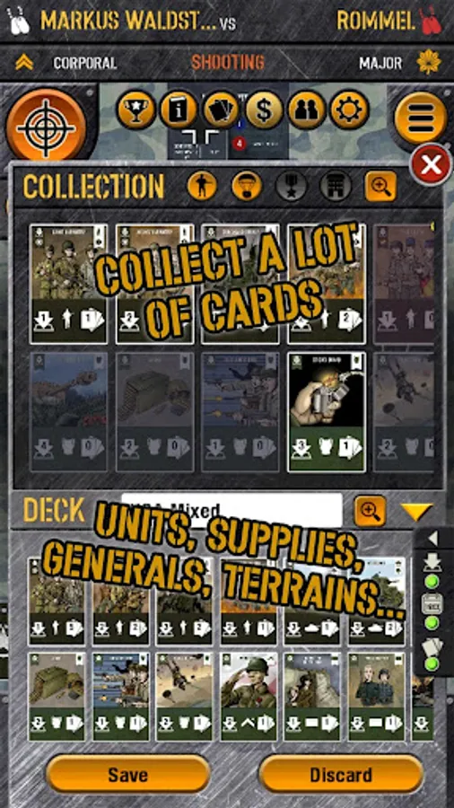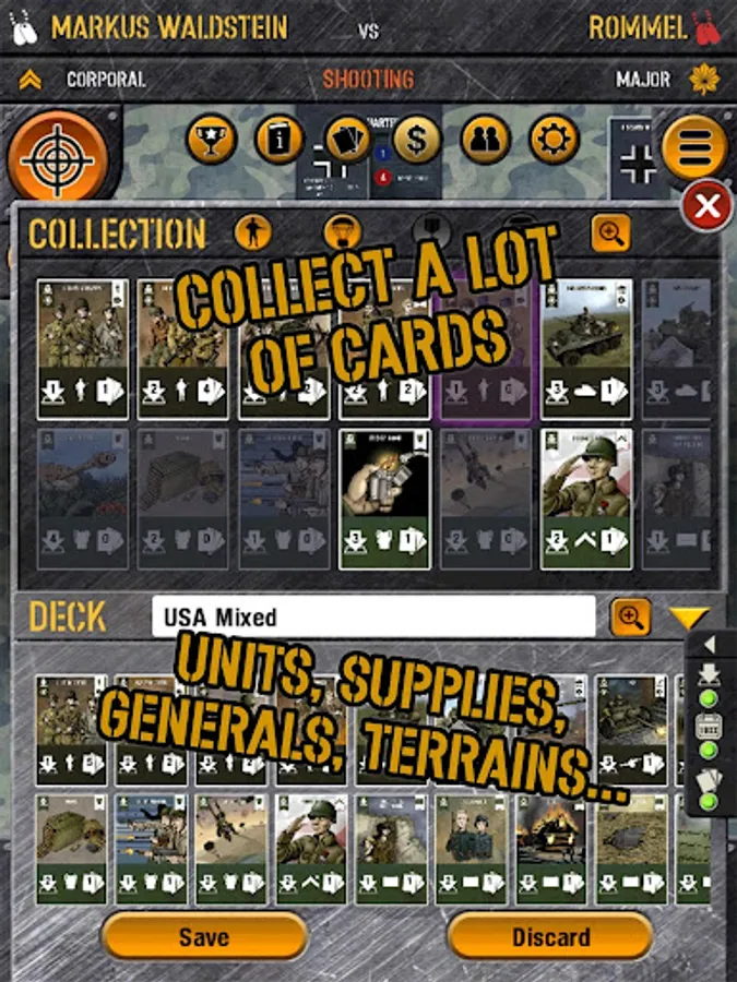 • Cards from famous generals each one of which has a different, indispensable characteristic to improve the capabilities of our units, from Erwin Rommel to George Patton, and also Bradley and Model.