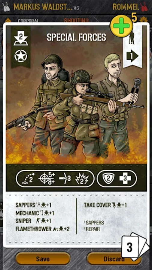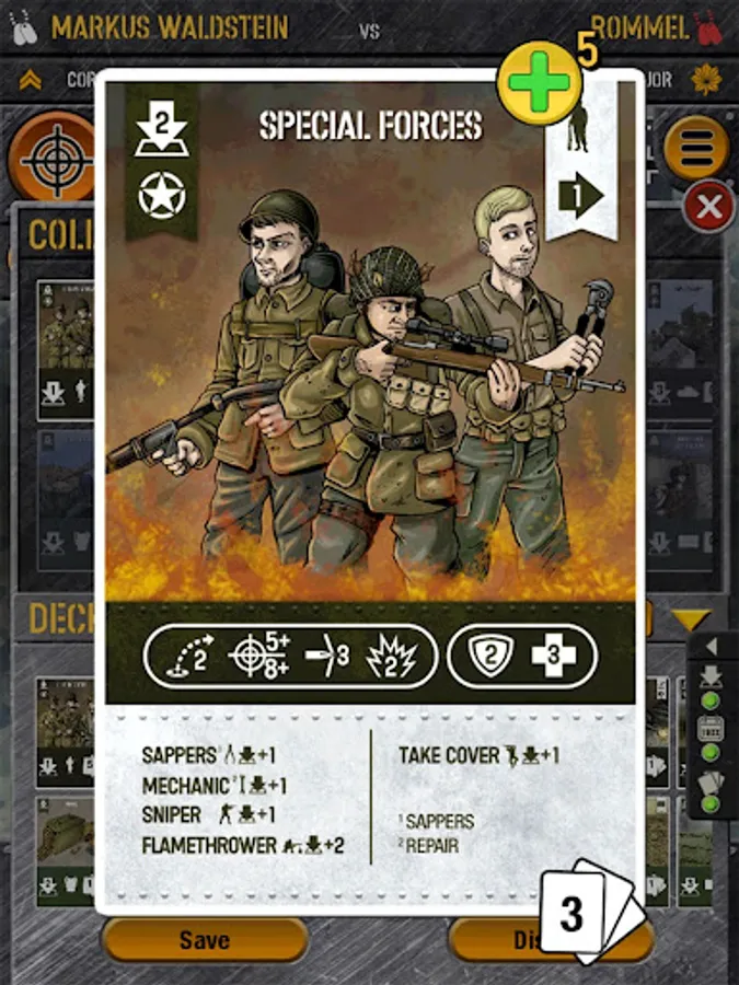 • You can also add specialists to your teams that have had specific training in order to give a better performance: sanitary units, mechanics, sappers, snipers, etc.