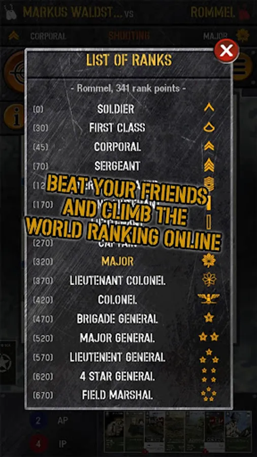 When you will win games you will reach a higher rank and you become the highest ranked commander of Worldwide Ranking of WWII TCG.